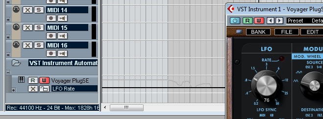 Enable plugin Read and Write and you can test VST automation by manually turning Voyager knobs or adjusting PlugSE controls. All movements will be drawn on the automation track.