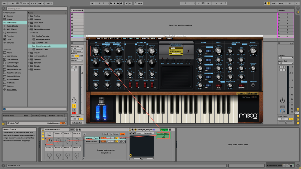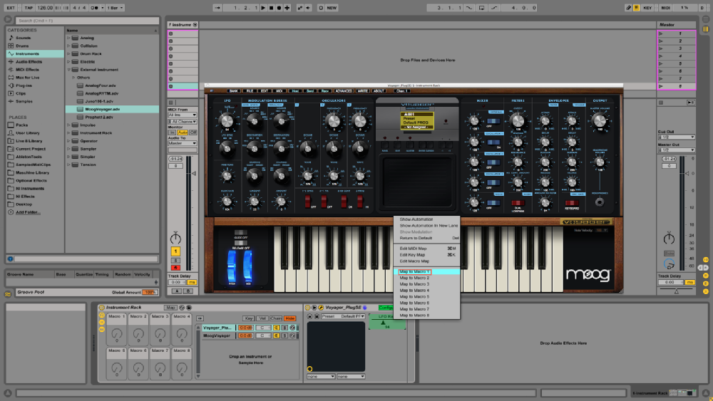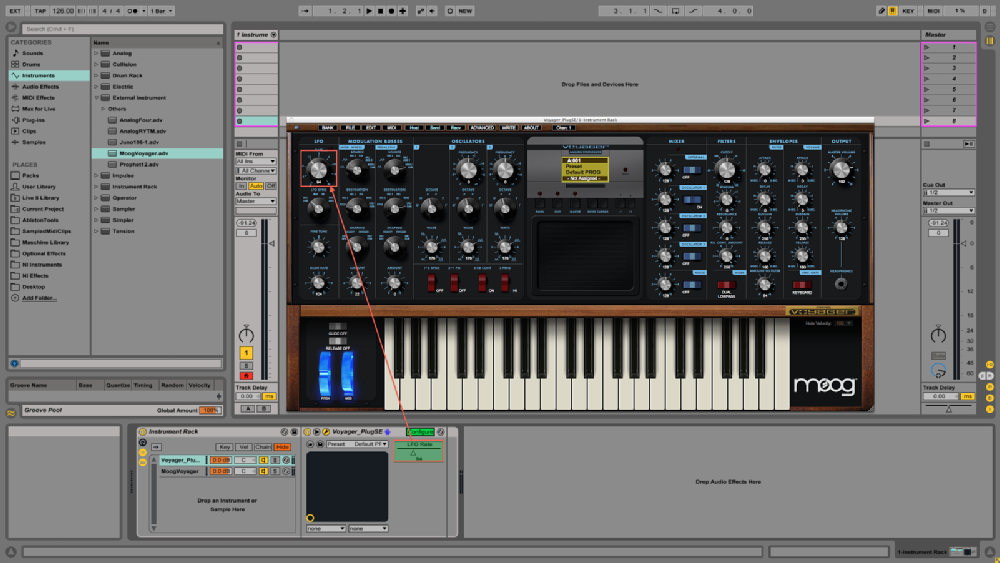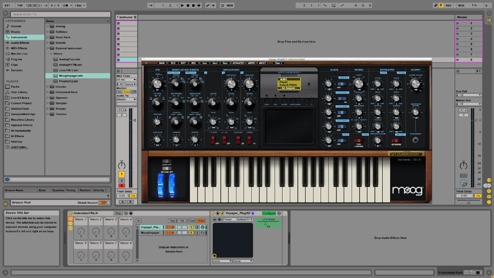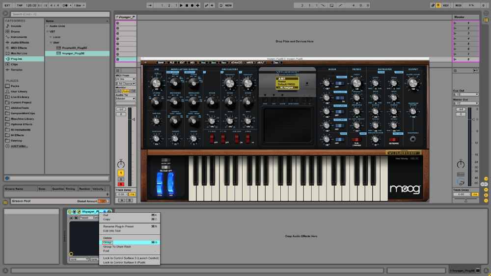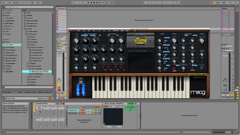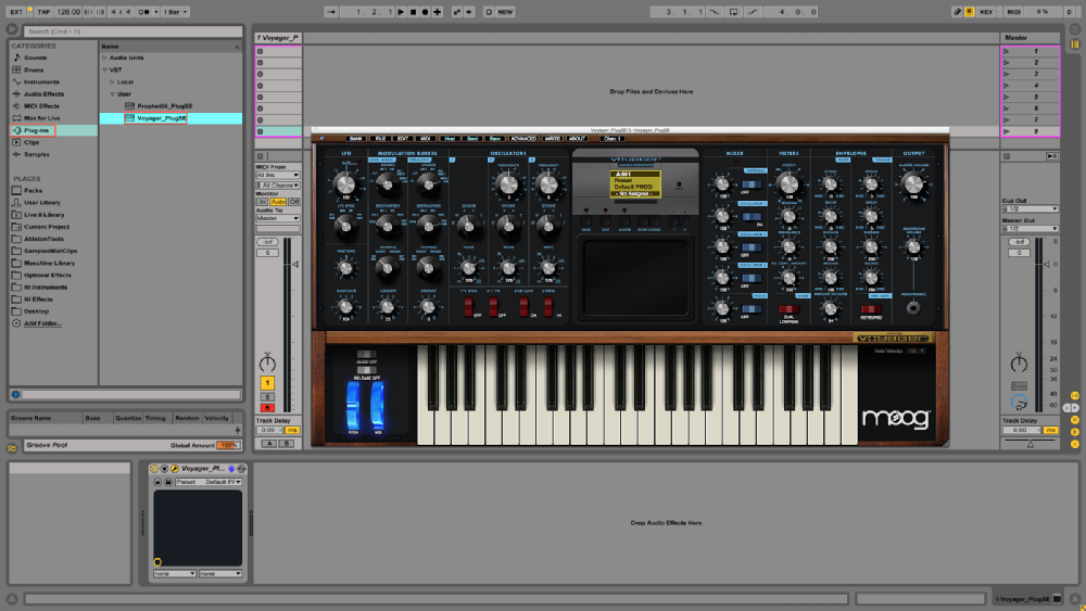 Step 1: Select the VST/AU Moog Voyager PlugSE from Ableton Live’s Plug-