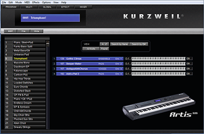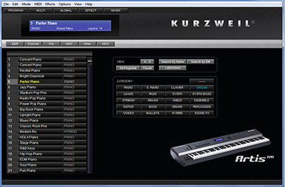 Please note! This editor is not a software instrument and it will produce no sounds unless connected with the Kurzweil ARTIS series keyboard.