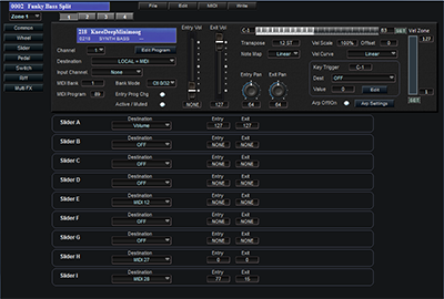 Each Program in a Multi can be customized with unique entry and exit values for physical controllers, Pan and Volume messages, Program Change messages, MIDI Bank Select messages, etc.