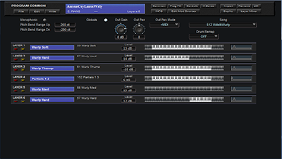 Each Program can have up to 32 unique layers that can be spread over the keyboard range or particular keys. Layers can be added or imported from other Programs.