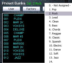 replaced with name label “Cat: 0 – Not Assigned –” and the Presets
