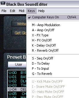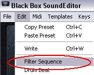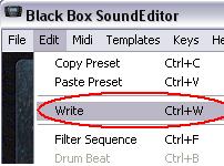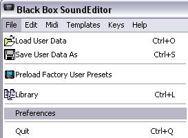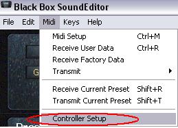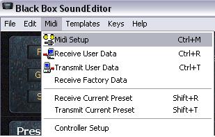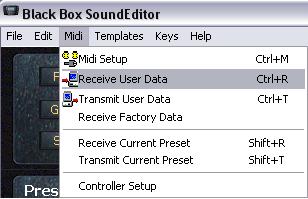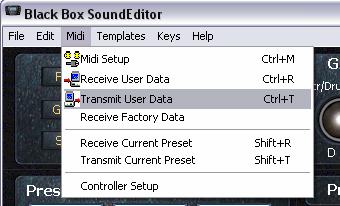 Data from the Editor to BLACKBOX select "Transmit" from Midi