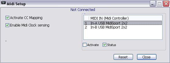 setting MIDI Clock sensing and Continuous Controller activation go to Midi in