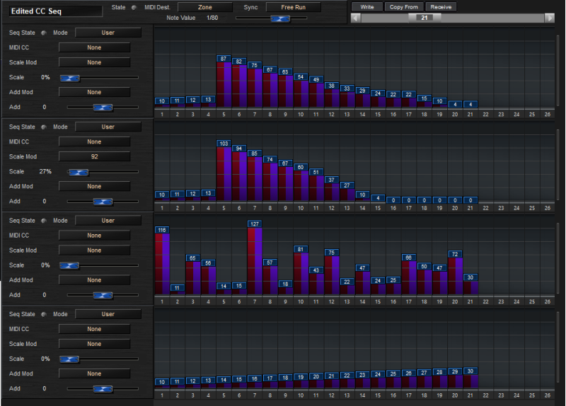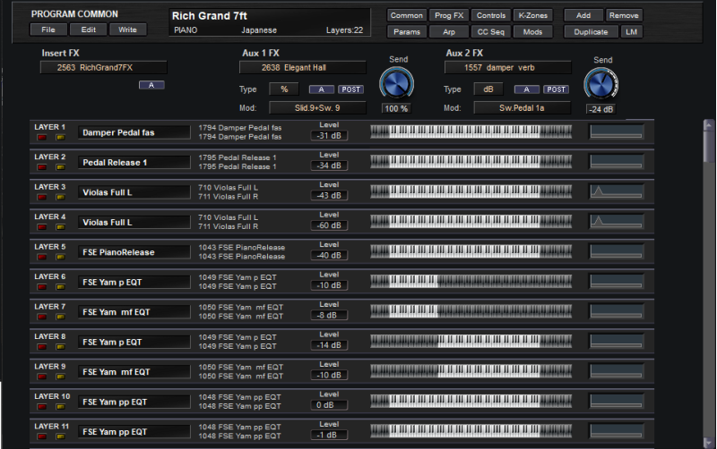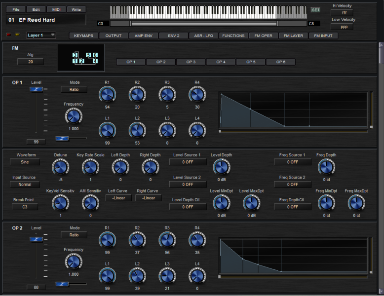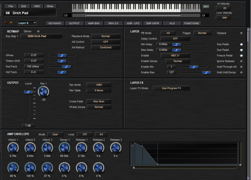 The PC4 is an incredibly deep and complex instrument with many programming options. The Sound Editor has been designed to make the programming and editing process as simple and easy to use as possible while providing all of the functional control needed to adjust every parameter. A few of Sound Editor’s editing windows are shown below. Click on the image to enlarge it.