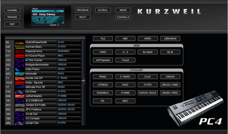 Sound Editor allows you to create, edit, organize and store PC4s Programs, Multi, and Effects.