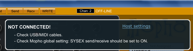 Also, some other warnings may pop up like for example Parameter Send or Receive that are used to control the Mopho in real time.