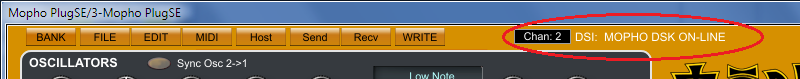 Start the Mopho PlugSE, the PlugSE will automatically search for the Mopho on all available ports. If everything is set up correctly, you should notice the “DSI MOPHO ON LINE” message. If not, a warning message will inform you about incorrect Mopho Global settings.