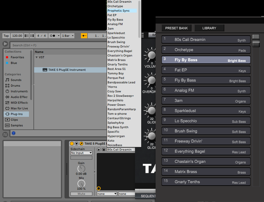 programs from the TAKE 5 internal banks. Each VST or AU plug-