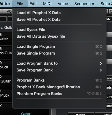 Load SysEx File Loads any .syx file that contains a valid Prophet X data.
