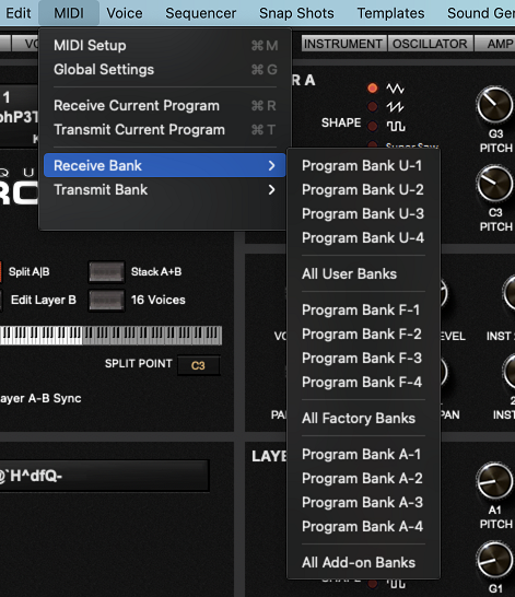 Here you can access all functions that will enable the editor to communicate with the Prophet X and sync the data by receiving all banks.