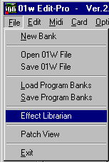 2. To open the Effect Librarian window, pull down File menu of the main editor window or if you opened the Effect Editor then click on "Effect Librarian”.