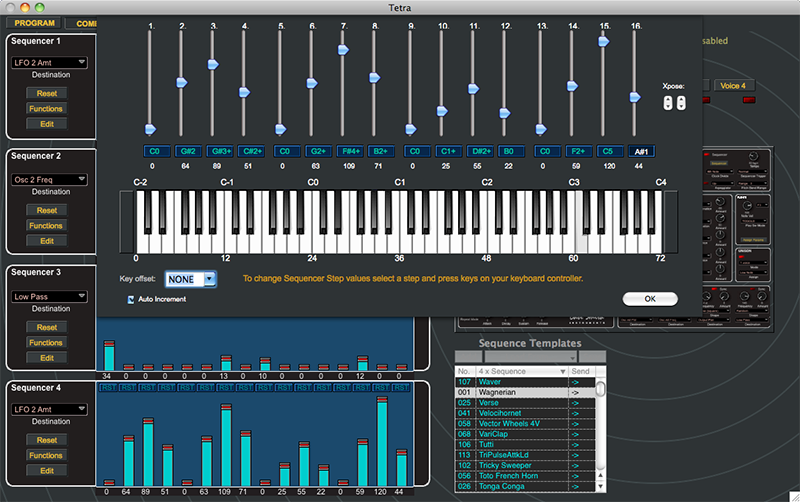 Please note! The TETR4 Sound Editing software is not software instruments and it will produce no sounds unless connected with the DSI TETR4 synthesizer.
