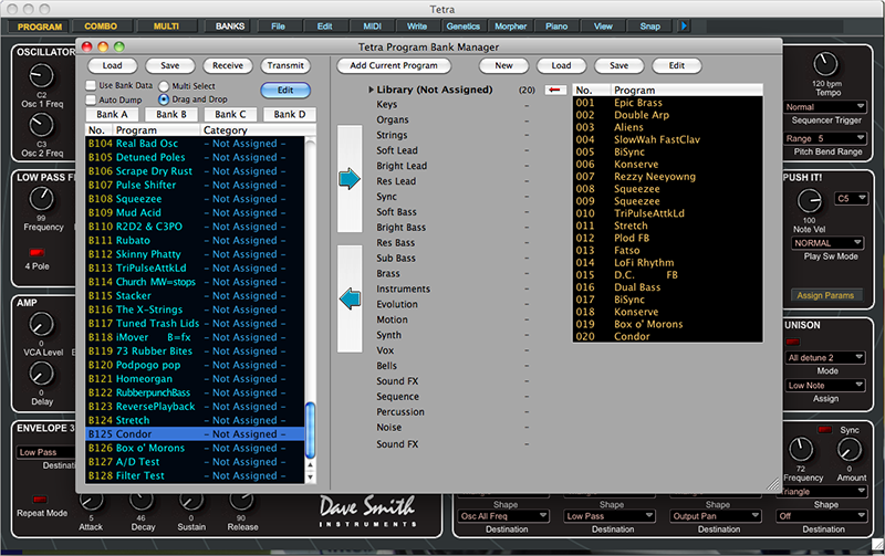 TETR4 Pro version features the Bank Manager Librarian. You can store and organize unlimited number of TETR4 Programs.