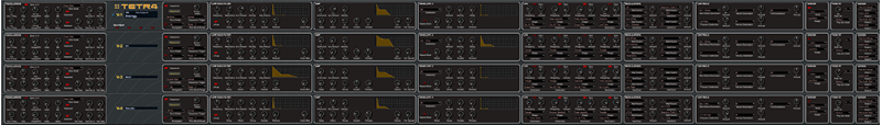 TETR4 Sound Editor provides the ultimate editing and sound development experience by displaying all TETR4 Program parameters in a single intuitive graphical interface. The interface resembles the look and feel of the real synthesizer while streamlining your workflow and allowing you to view the complete details of any Program at a glance and to edit any parameter using your computer. It allows you to see how the factory Programs are put together or to freely experiment to see what you can create.