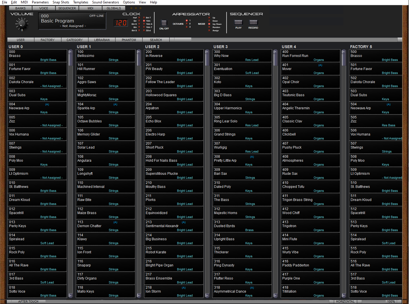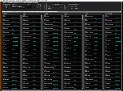 You can display and edit Program parameters. Programs can be assigned to Categories to assist in organizing, sorting and creating custom program banks.